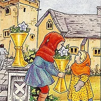 구름으로부터 나온 팔이 다른 하나의 컵을 그에게 권하고 있다.